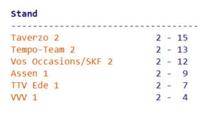 Team1 verloor in Veenendaal met 8-2 van SKF 2. Een te zware dobber voor de Edenaren.