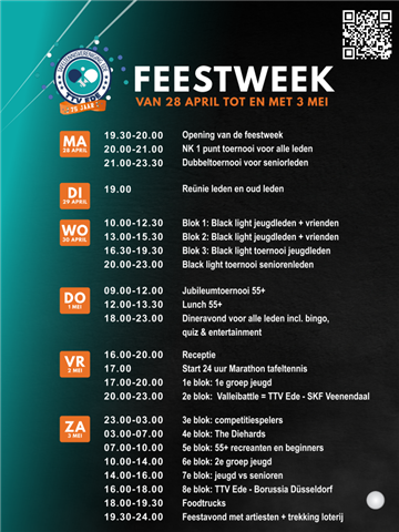 Tafeltennissers TTV Ede weten al waar ze aan toe zijn. Waar vele sportbonden nu net het seizoen afsluiten heeft de landelijke tafeltennisbond (NTTB) de indeling voor de najaarscompetitie 2025 al bekend gemaakt. De Edese eerstedivisionist zal over de indeling niet ontevreden zijn. Met het Veenendaalse SKF 2 is ook weer een regionale tafeltennisderby in ere hersteld. De overige te ontmoeten teams zijn Assen, Taverzo 2 (Zoetermeer), Tempo-Team 2 (Amsterdam) en VVV (Leidschendam). Het programma TTV Ede is als volgt: 13/09 TTV Ede – Assen; 20/9 SKF 2 – TTV Ede; 27/9 TTV Ede – Taverzo 2; 4/10 Tempo-Team 2 – TTV Ede 11/10 TTV Ede – VVV. De returns worden vanaf 25 oktober gespeeld en de laatste wedstrijd is zaterdag 22 november.